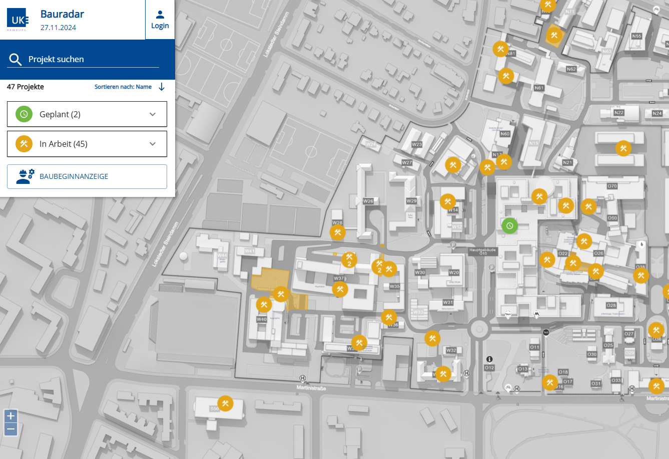 Wir unterstützen das UKE bei der Planung Ihrer Bau- und Wartungsprojekte mit dem eigens dafür entwickelten Bauradar.