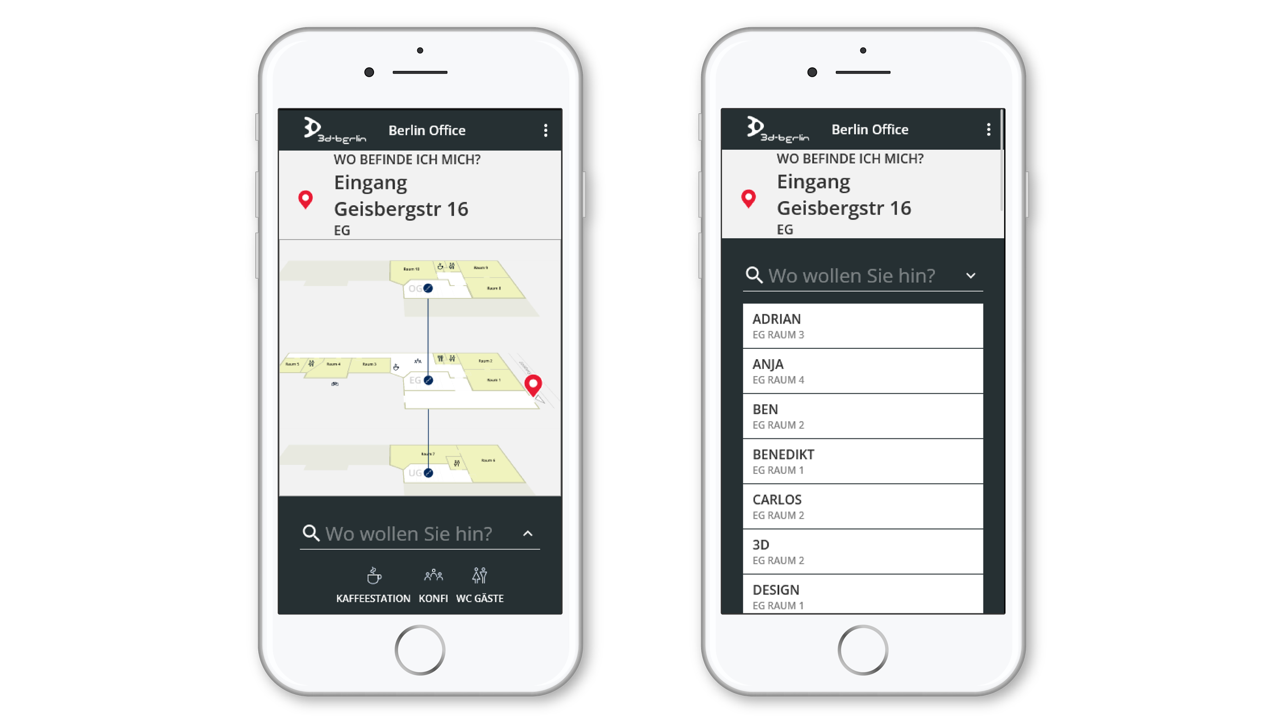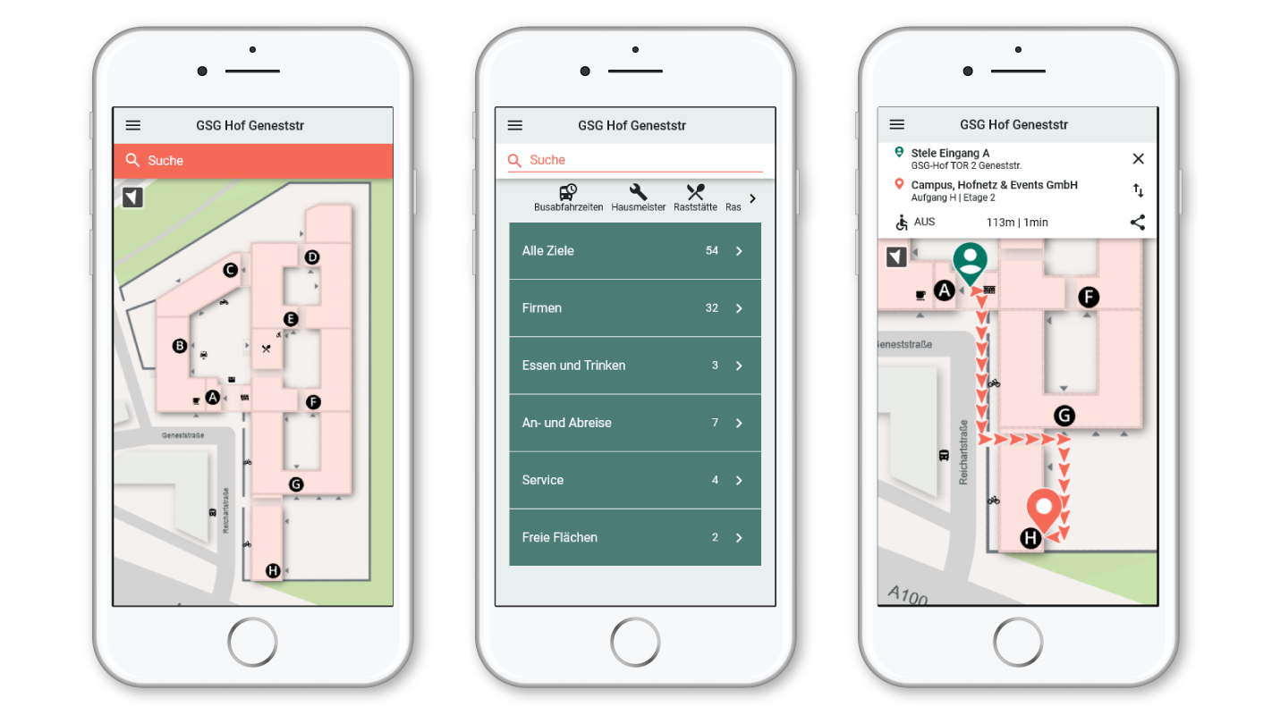 Stellen Sie sich vor, jede Einladung zum Meeting enthält automatisch einen Link zur individuellen Wegbeschreibung – direkt zum passenden Konferenzraum. Neue Mitarbeitende, Kunden, Besucher und Zulieferer finden sich vom ersten Moment an selbstständig zurecht – sei es zur Kaffeemaschine, zu den Toiletten oder zur Anlieferung.